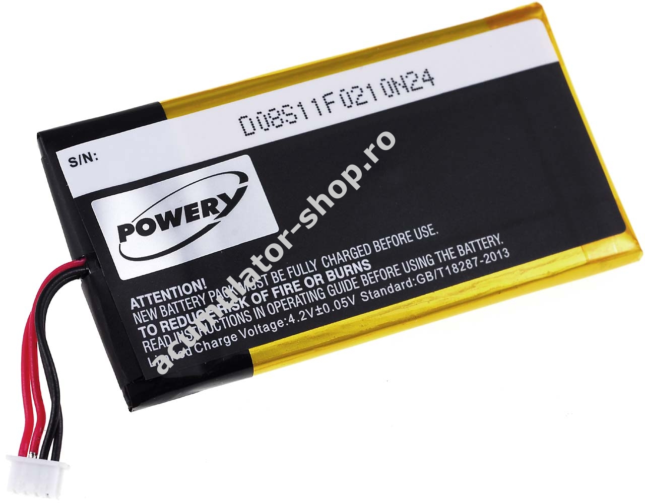 1000mAh/3,7Wh3,7VLi-PolymerNegruPowery67,7mm x 31,9mm x 4,4mm100g