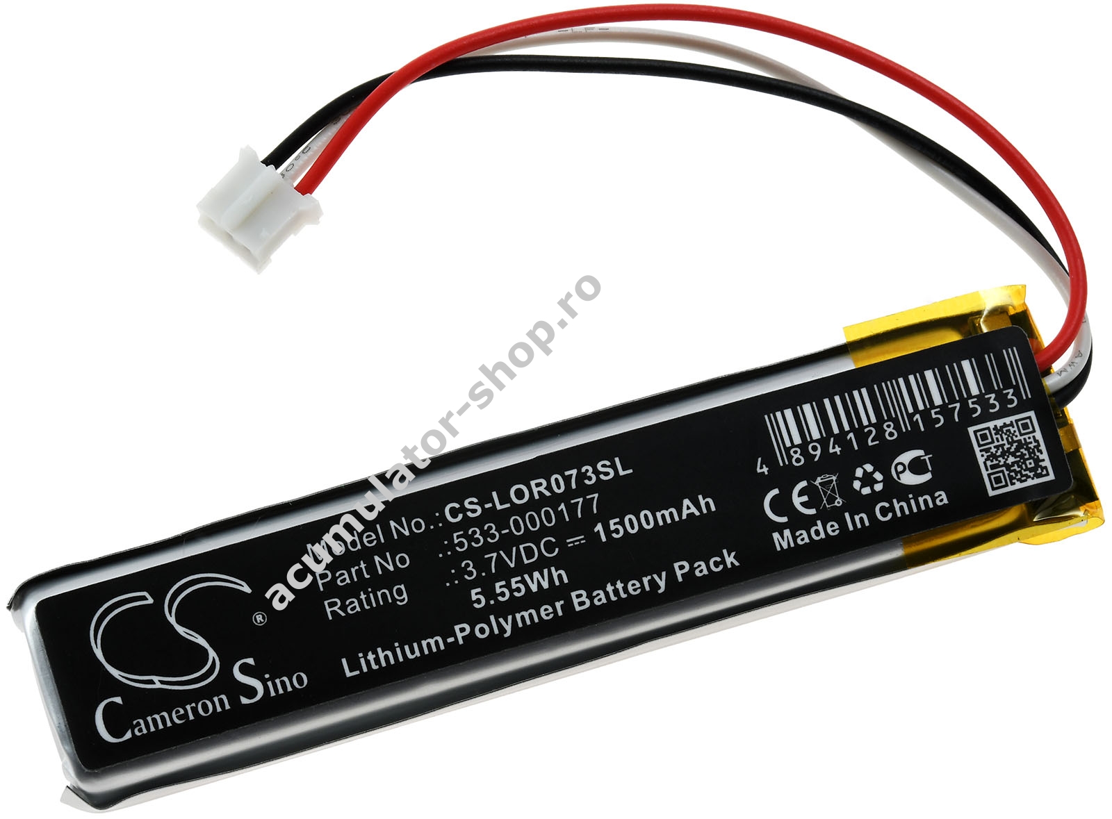 1500mAh/5,5Wh3,7VLi-PolymerNegruPowery85,1mm x 19,2mm x 7,2mm27g