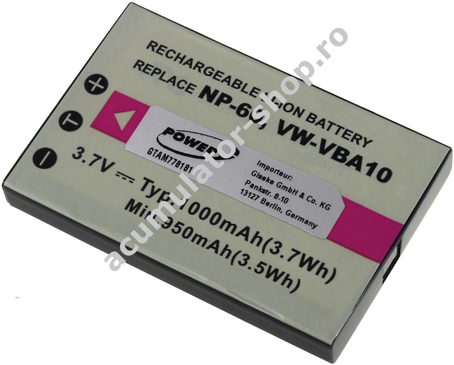 1000mAh/3,7Wh3,7VLi-IonPowery53,2mm x 35,3mm x 7,1mm24g