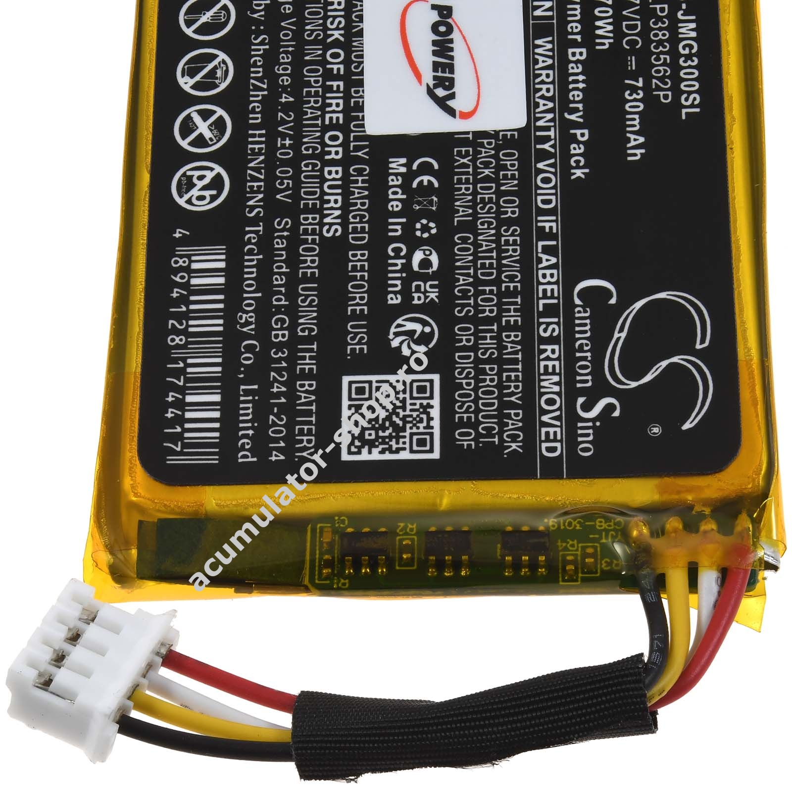 730mAh/2,7Wh3,7VLi-PolymerNegruPowery55mm x 39mm x 4mm16g
