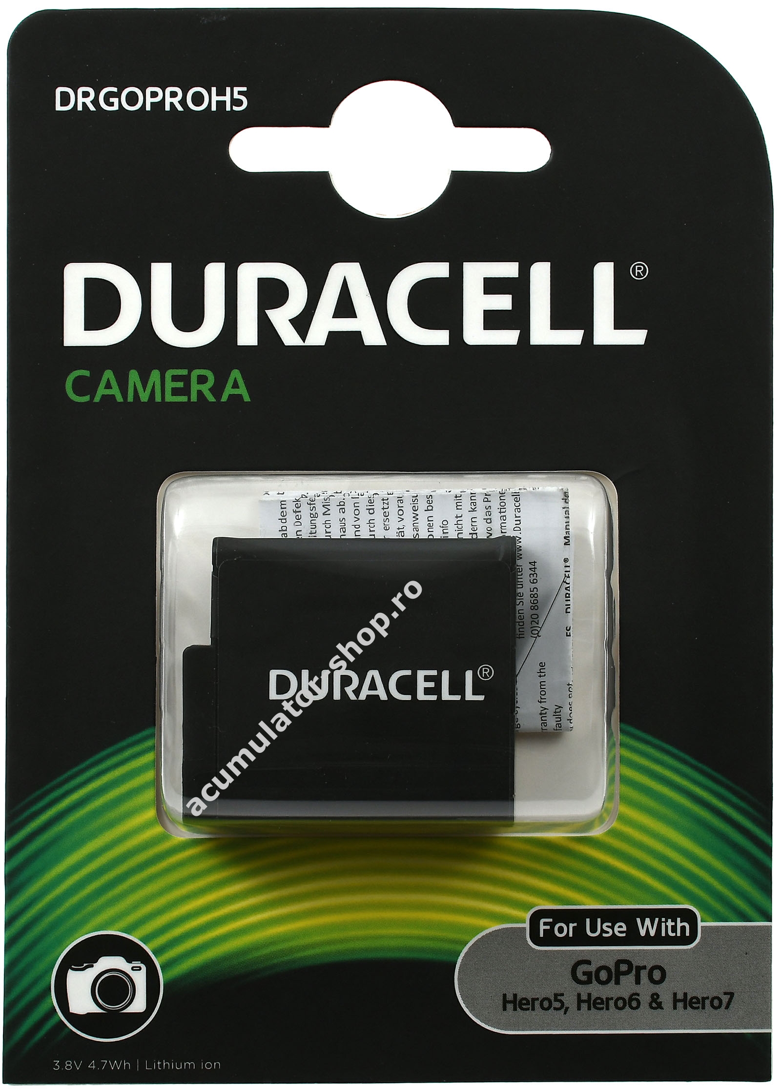 1250mAh/4,7Wh3,8VLi-IonNegruDuracell35,0mm x 31,0mm x 11,0mm23g