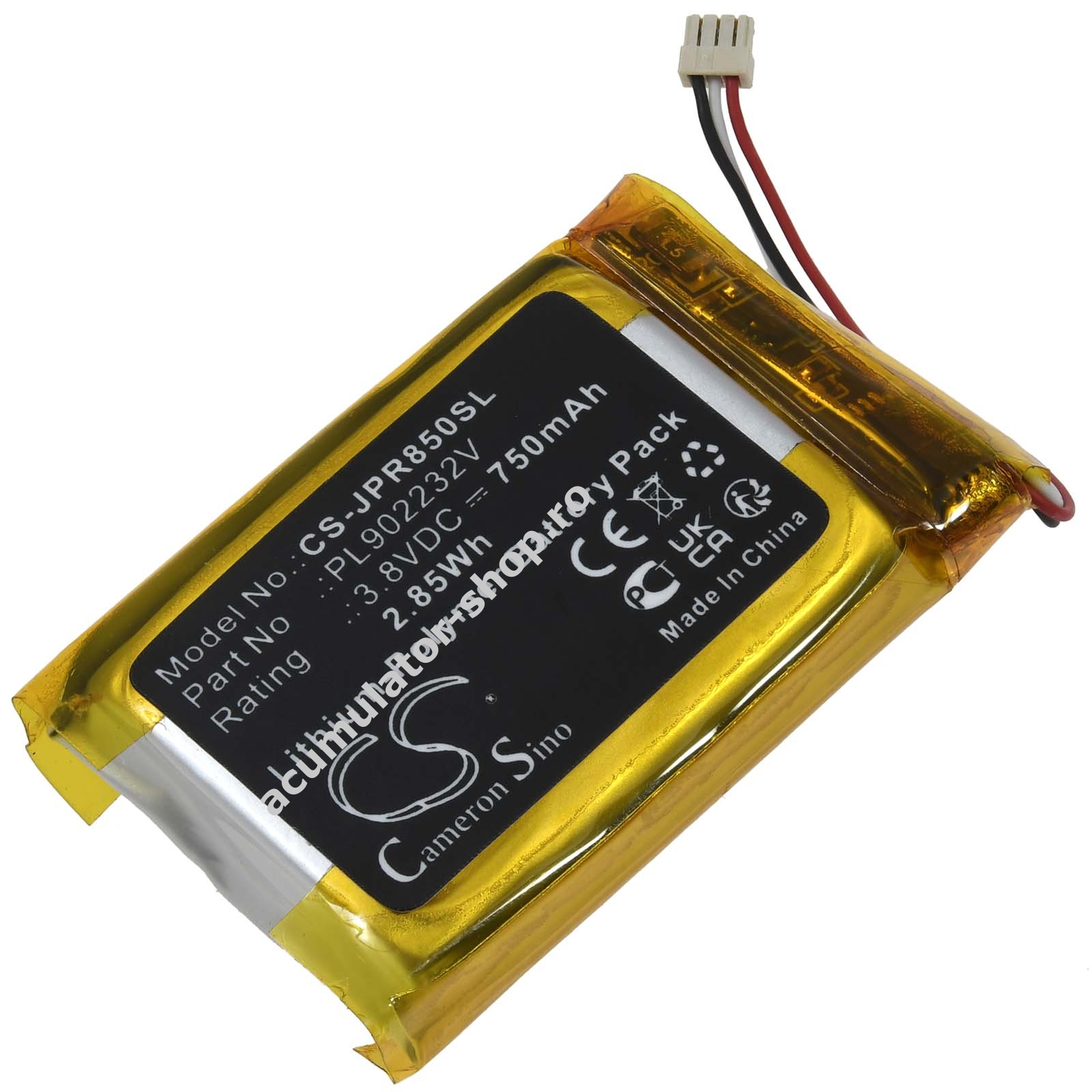 750mAh/2,85wh3,8VLi-PolymerNegruPowery34mm x 22mm x 8,5mm13g