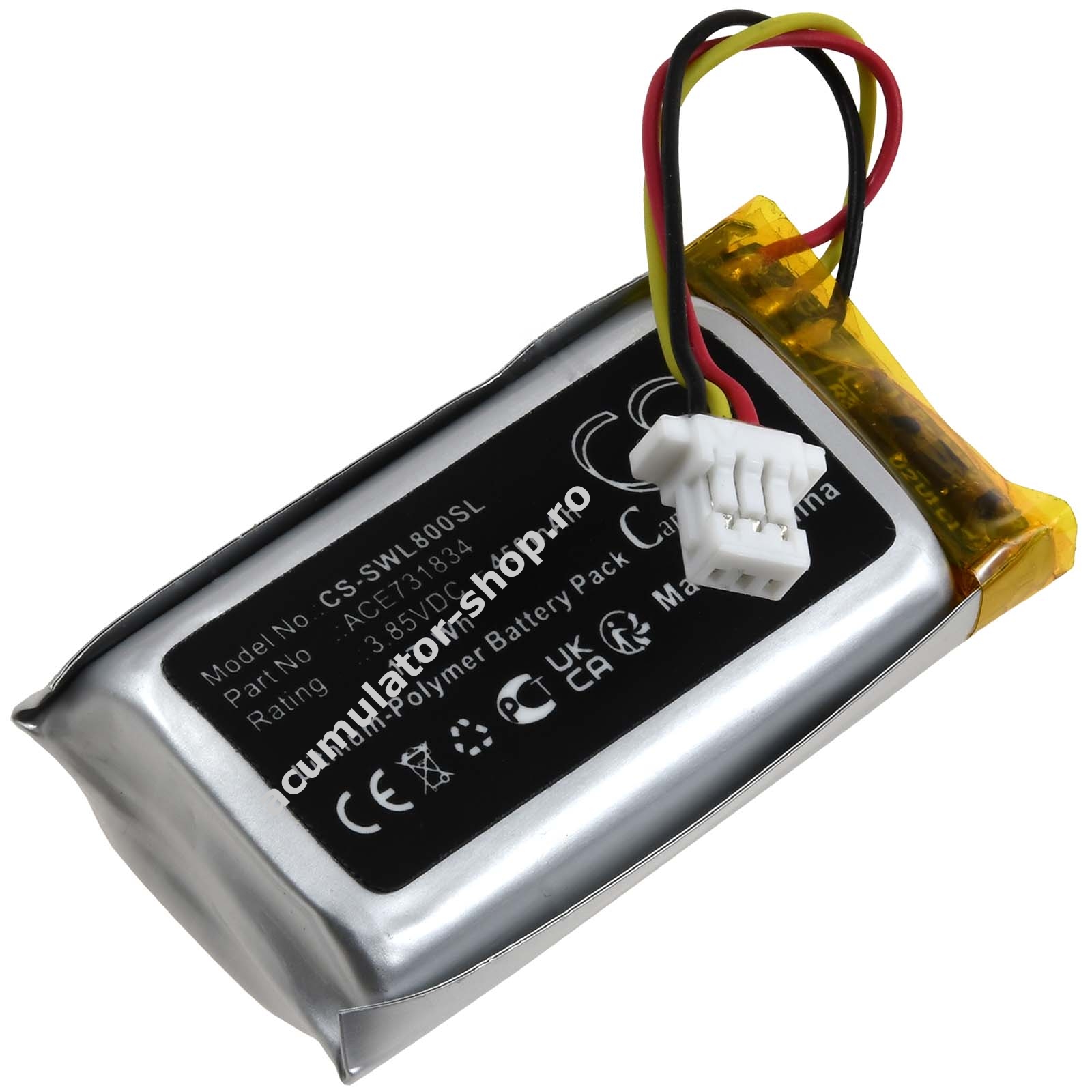 450mAh/1,7Wh3,7VLi-PolymerNegruPowery34mm x 17mm x 7mm60g