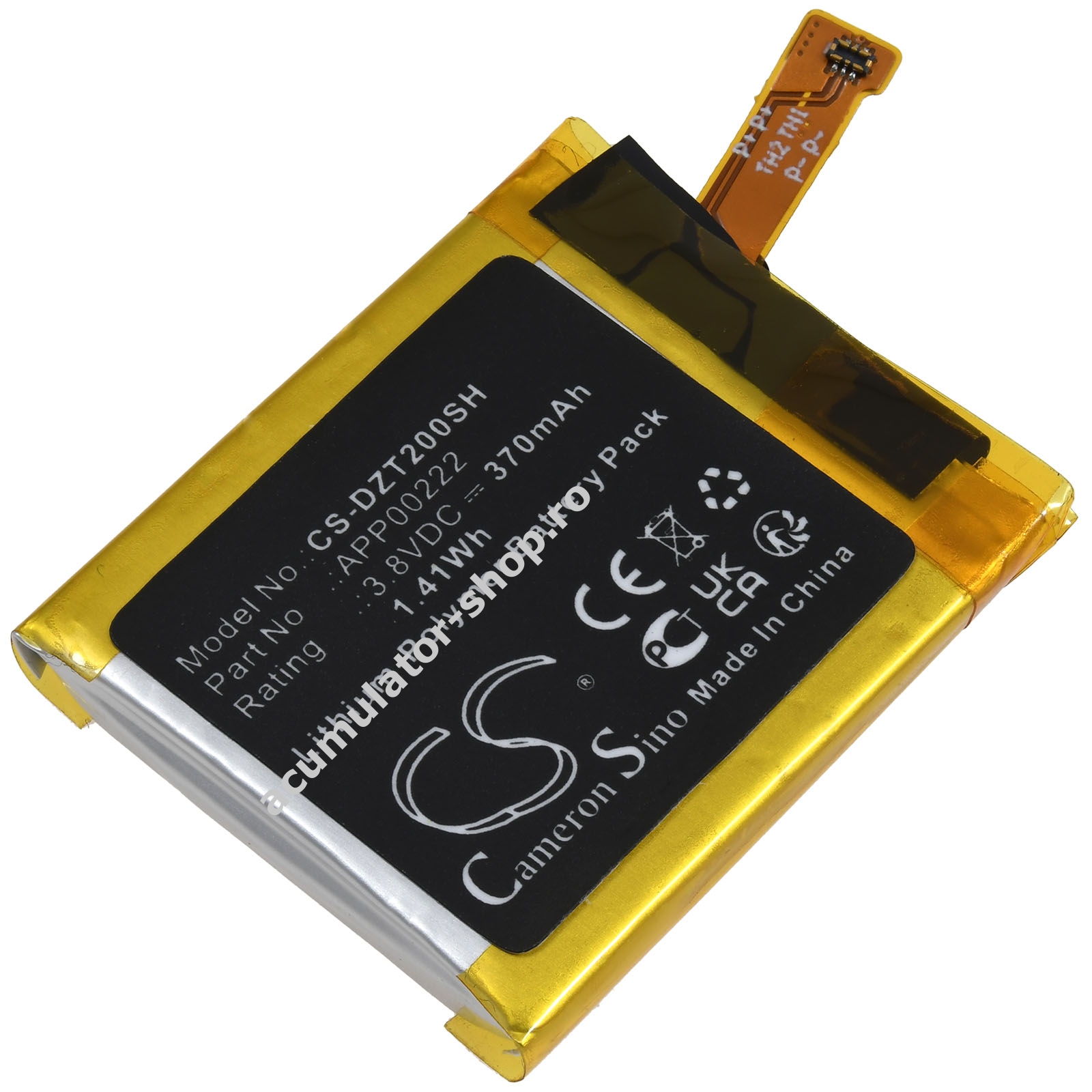370mAh/1,4Wh3,8VLi-PolymerNegruPowery31mm x 26mm x 4mm8g