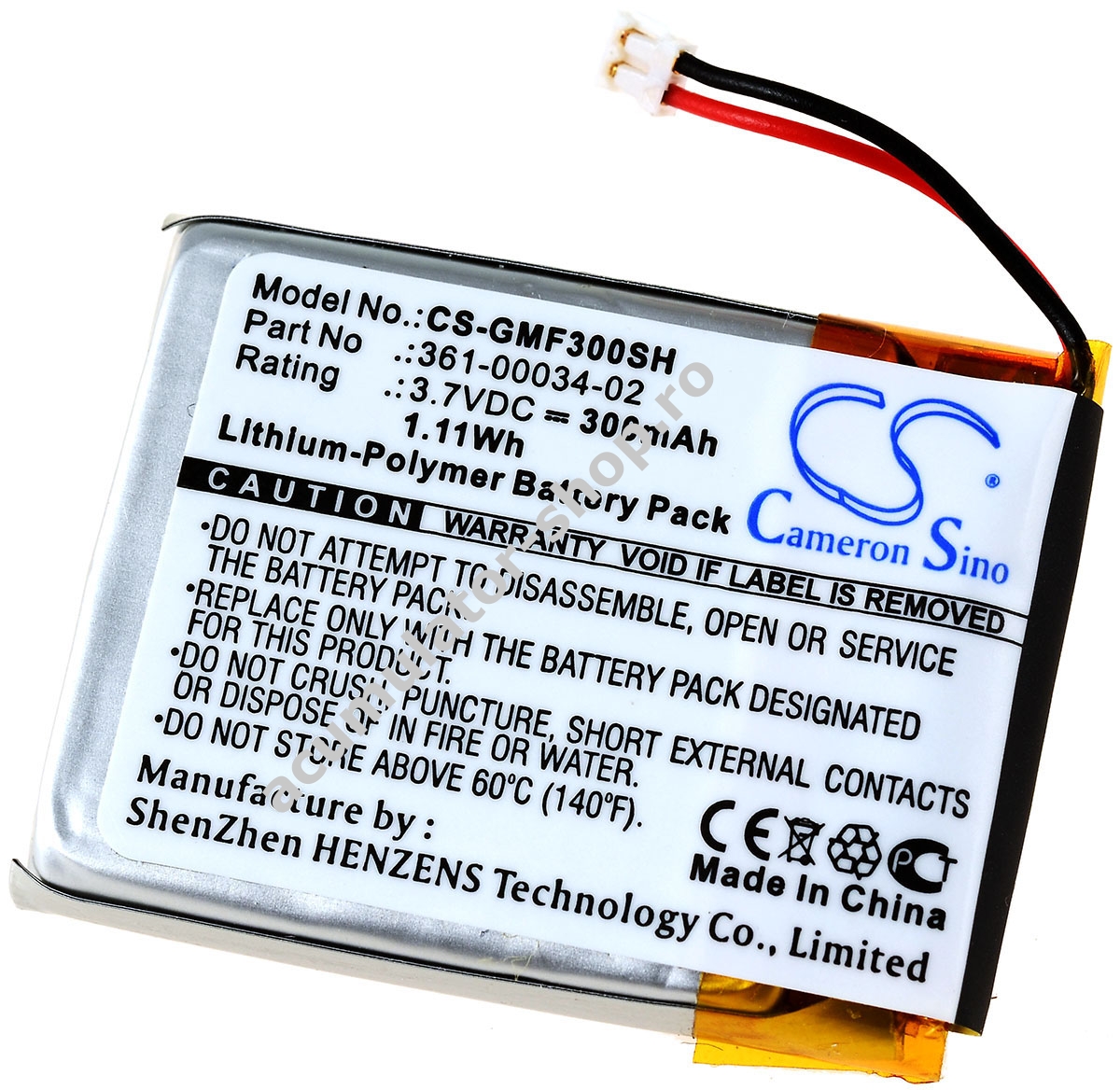 300mAh/1,1Wh3,7VLi-PolymerNegruPowery32,1mm x 24,5mm x 4,8mm7g