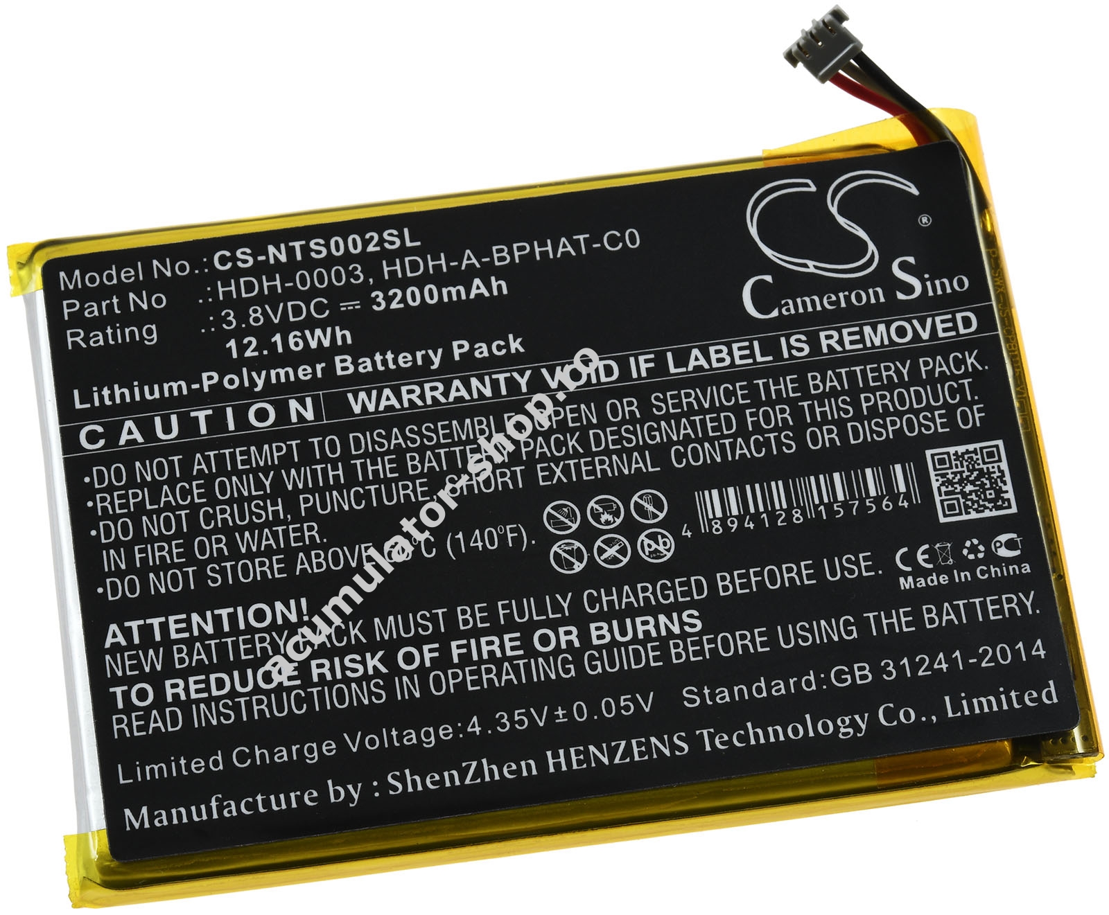 3200mAh/12,2Wh3,8VLi-PolymerNegruPowery73,6mm x 53,3mm x 5,7mm49g