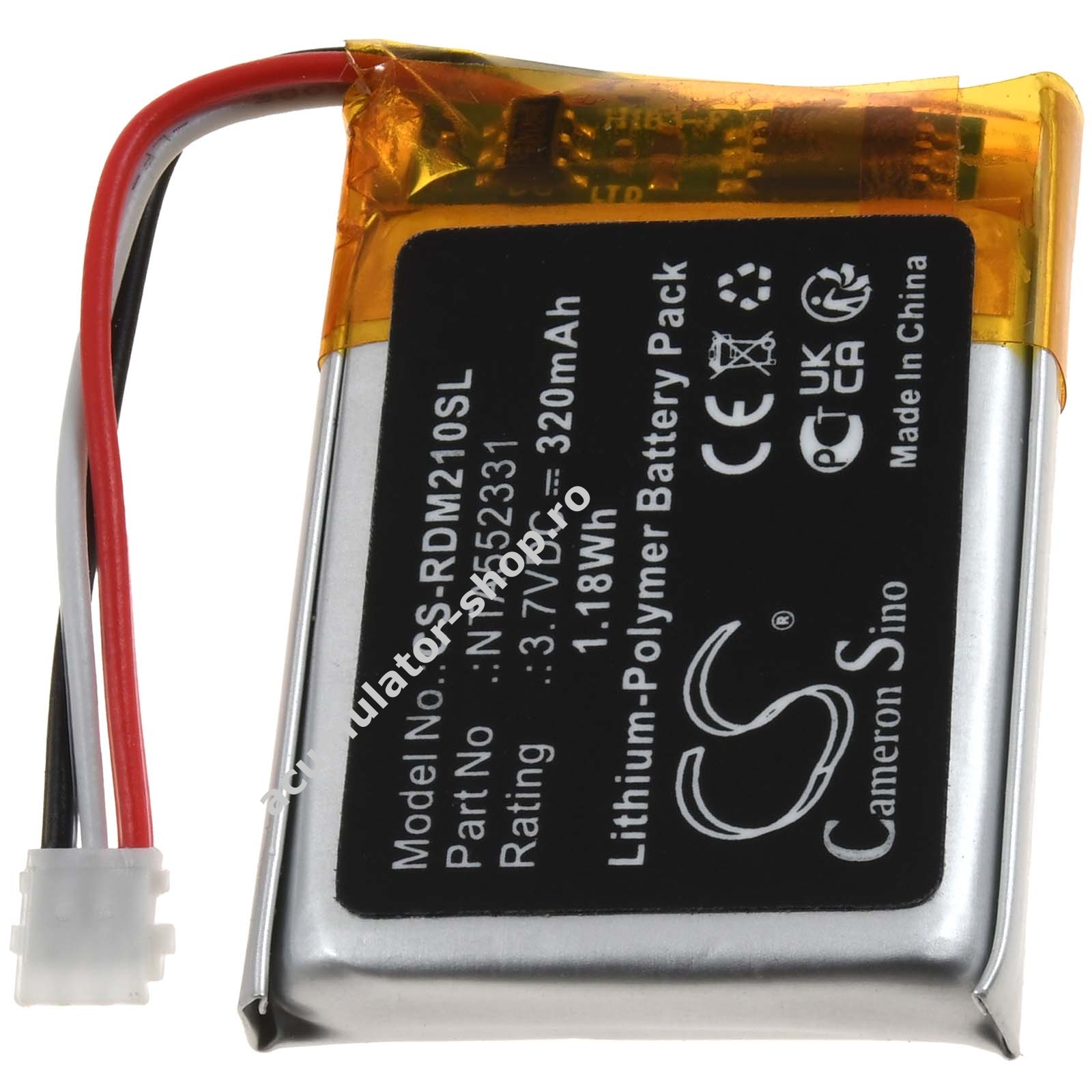 320mAh/1,2Wh3,7VLi-PolymerNegruPowery33mm x 22mm x 5mm30g
