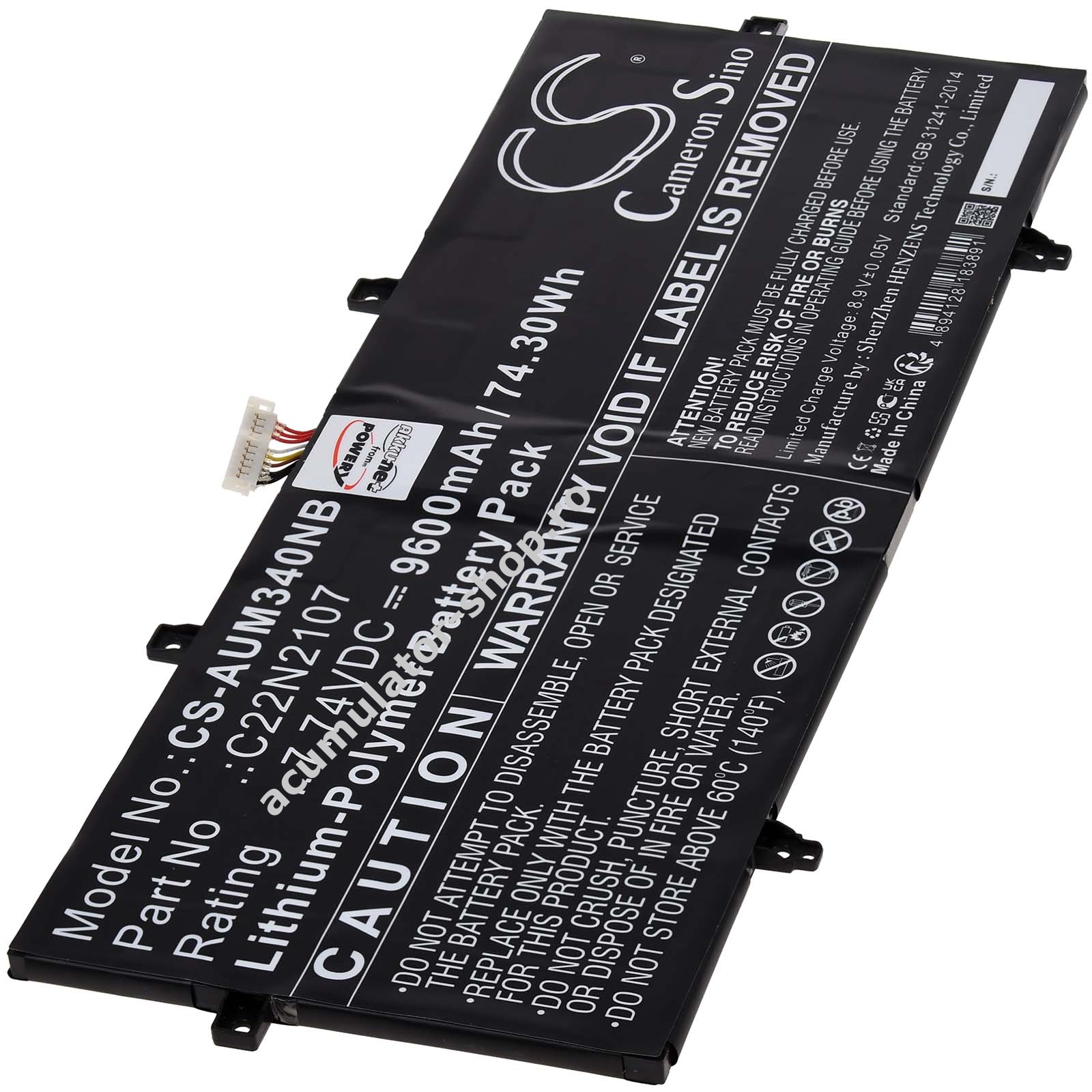 9600mAh/74Wh7,74VLi-PolymerNegruPowery276mm x 117mm x 5mm266g