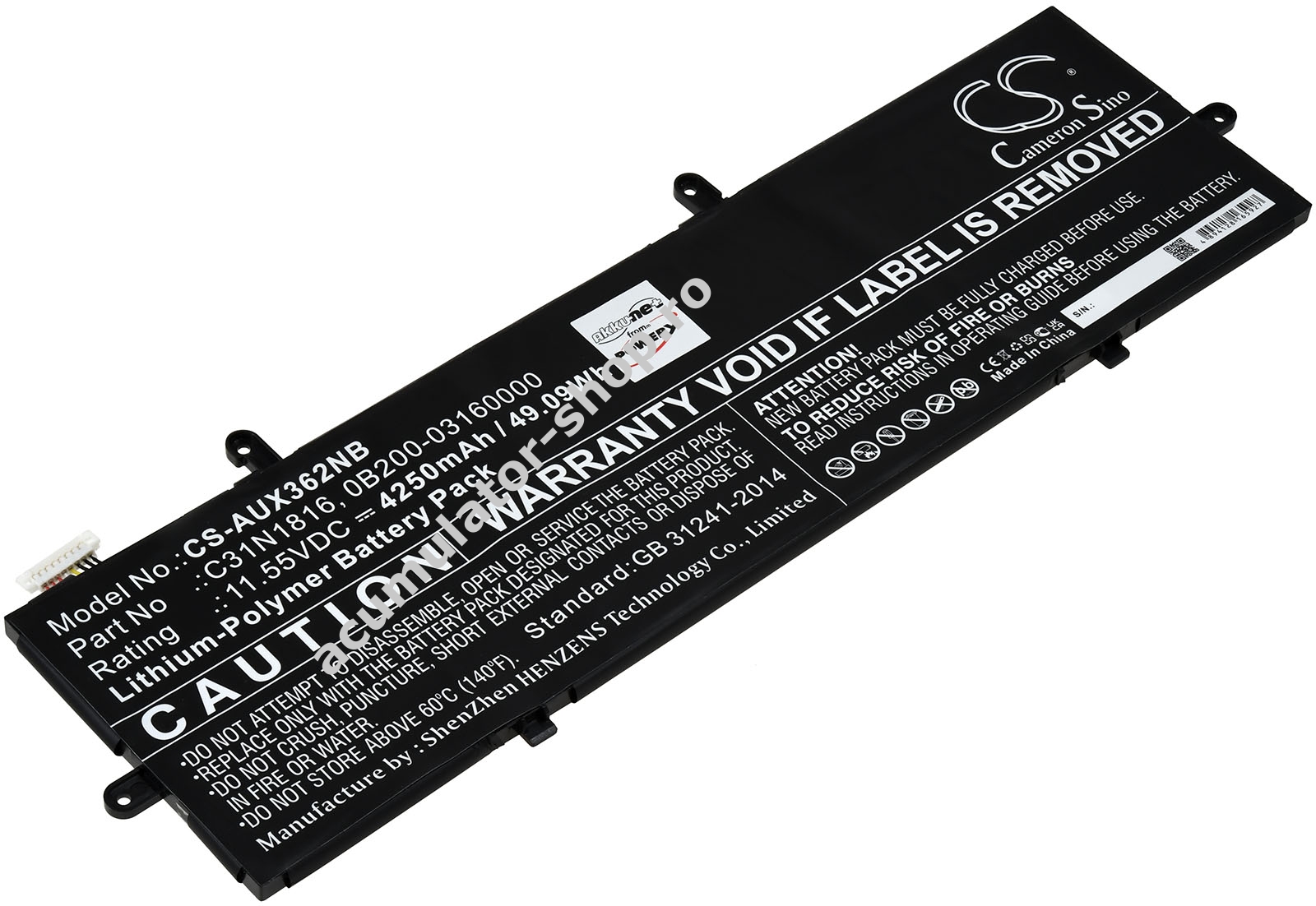 4250mAh/49Wh11,55VLi-PolymerNegruPowery291mm x 90mm x 5mm195g