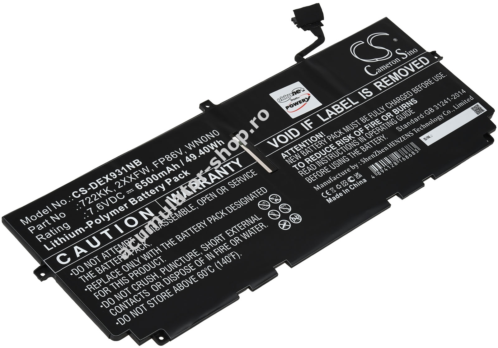 6500mAh/49Wh7,6VLi-PolymerNegruPowery266mm x 104mm x 4mm300g