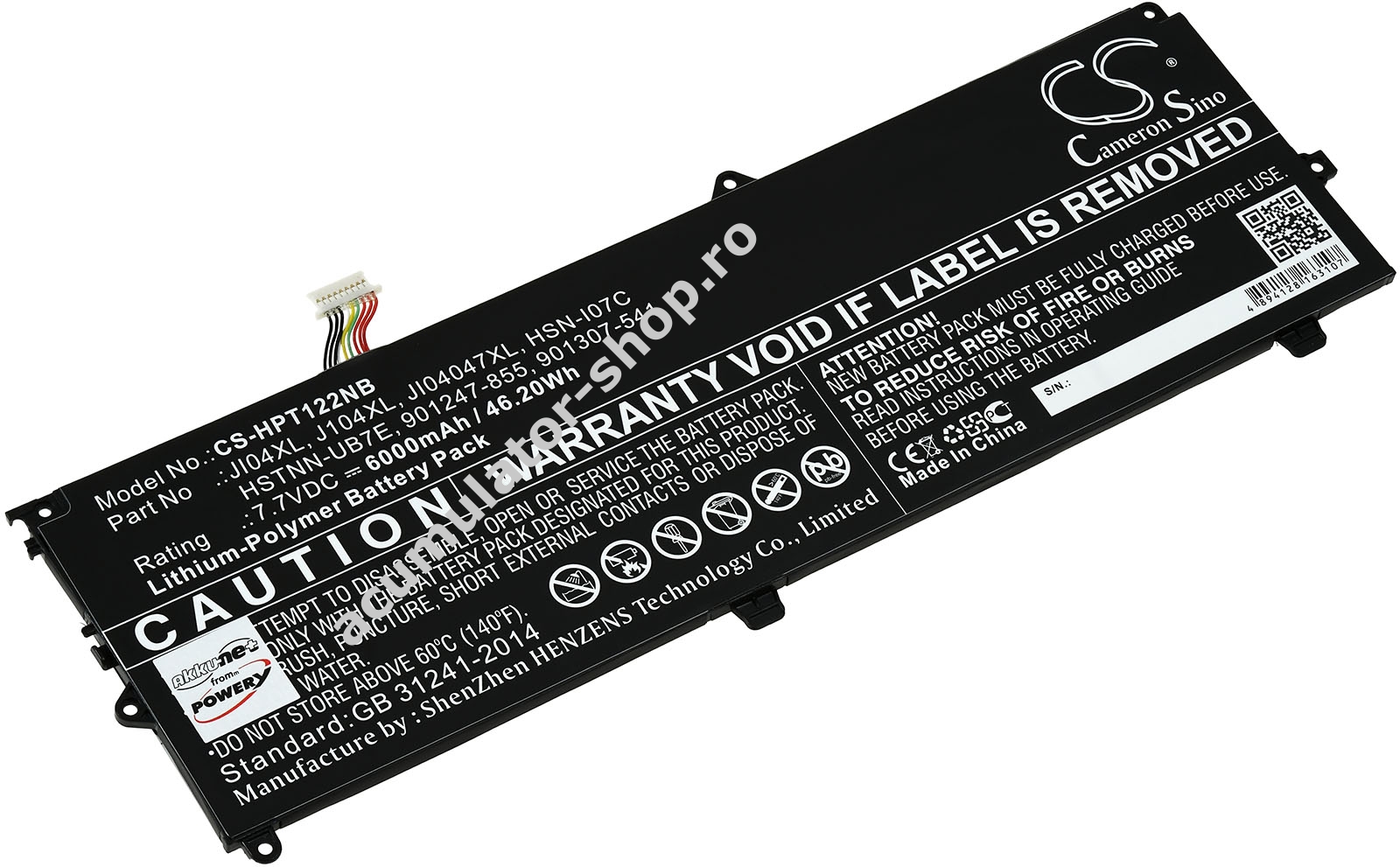 6000mAh/46,2Wh7,7VLi-PolymerNegruPowery274,5mm x 92,6mm x 4,0mm180g