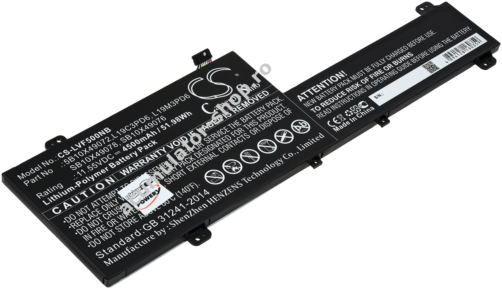 4500mAh/52Wh11,55VLi-PolymerNegruPowery285mm x 96mm x 6mm206g