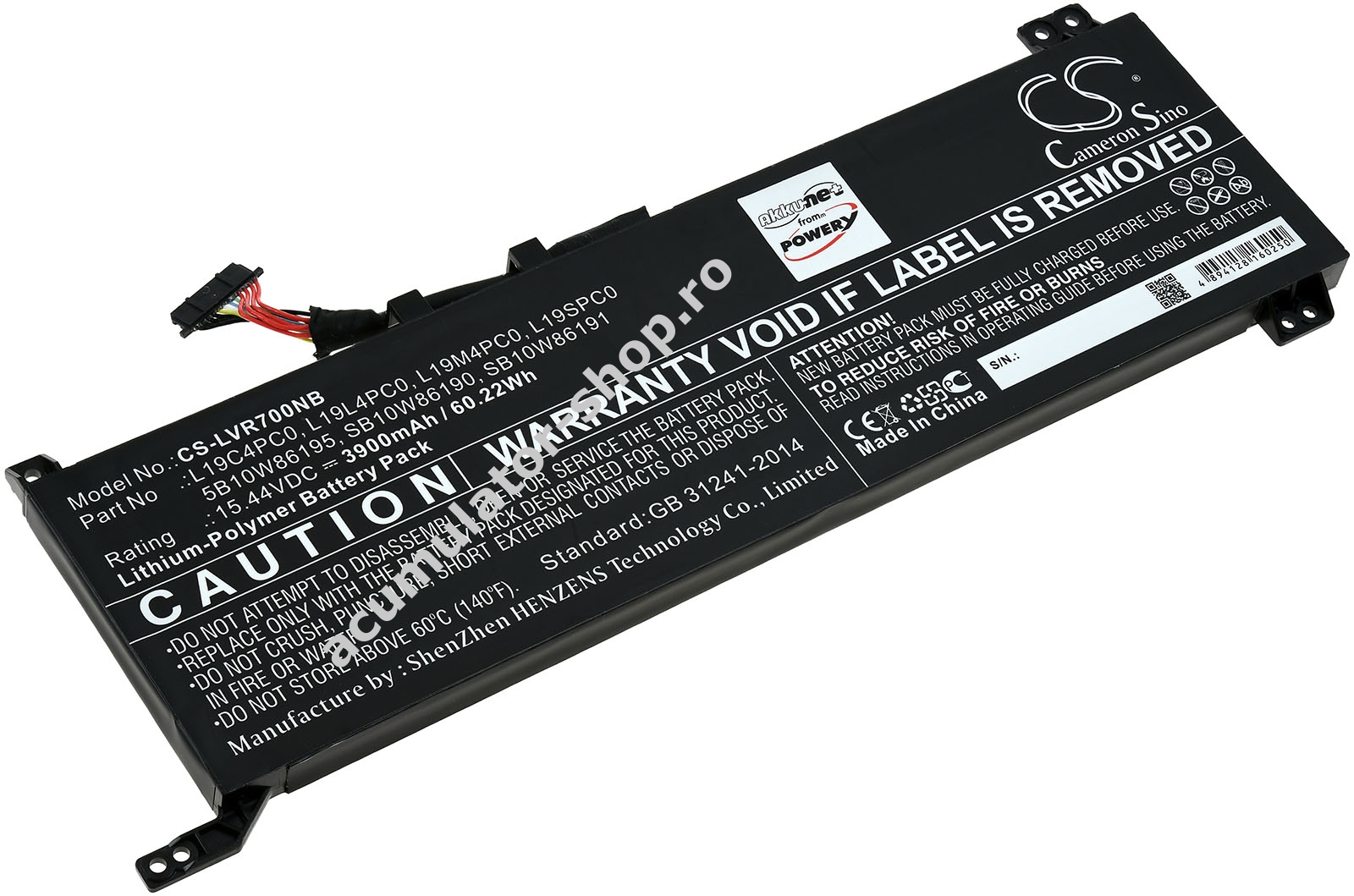 3900mAh/60Wh15,36VLi-PolymerNegruPowery244,2mm x 80,8mm x 8,3mm256g