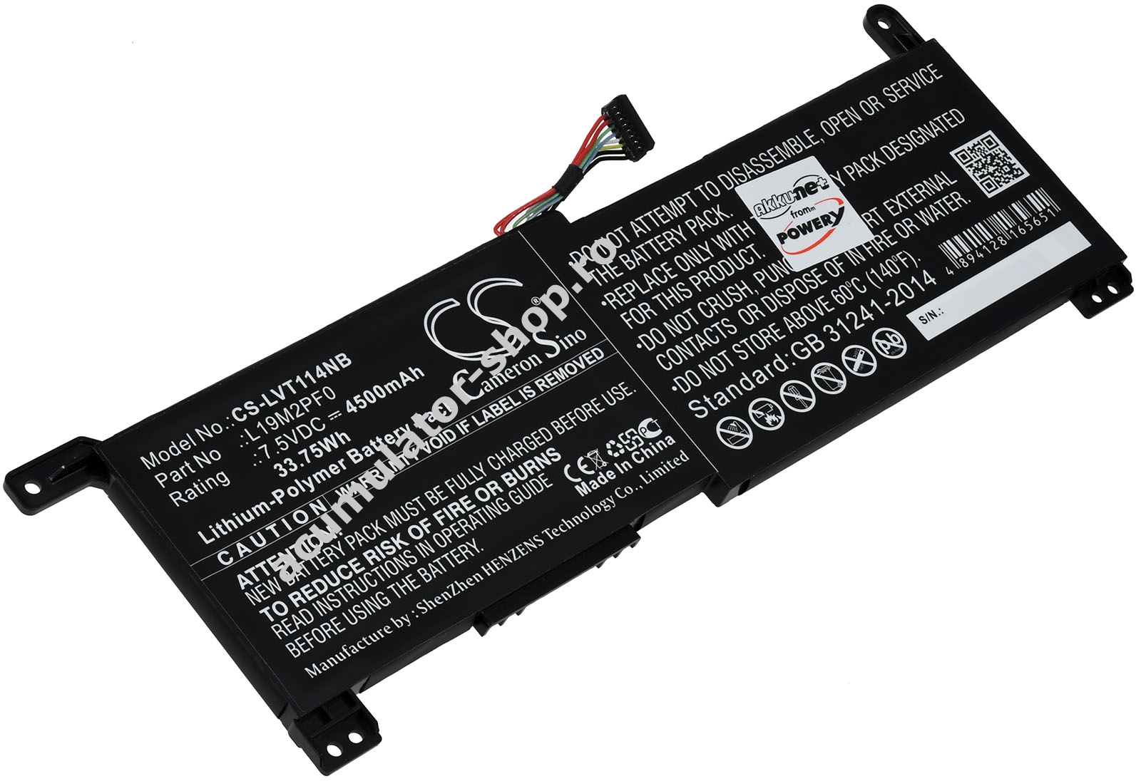 4500mAh/33,8Wh7,5VLi-IonNegruPowery216mm x 75mm x 6mm146g