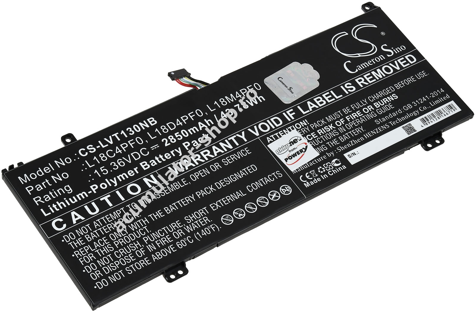 2850mAh/43,7Wh15,36VLi-PolymerNegruPowery243mm x 98mm x 5mm188g