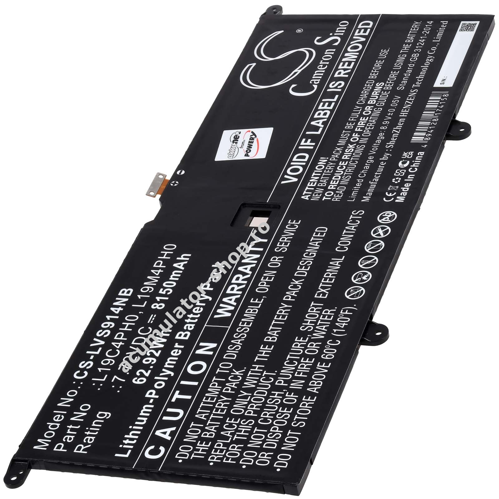 8150mAh/63Wh7,72VLi-PolymerNegruPowery291mm x 109mm x 5mm249g