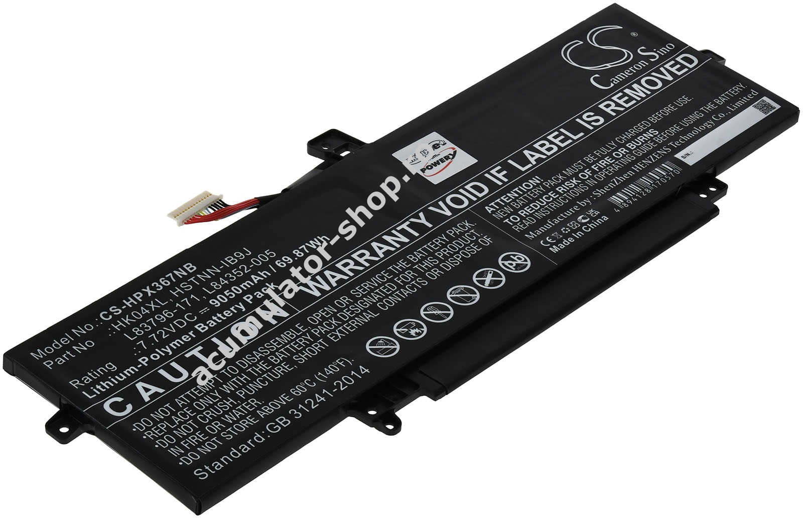 9050mAh/70Wh7,72VLi-PolymerNegruPowery295g