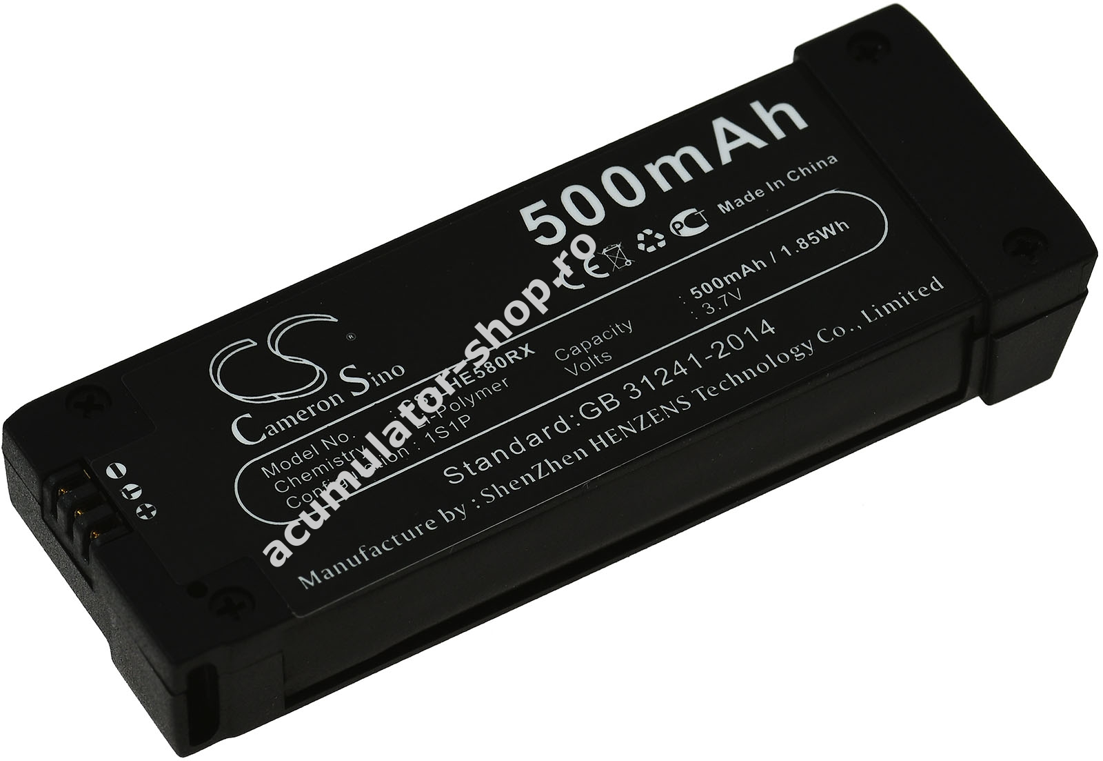 500mAh/1,85Wh3,7VLi-PolymerNegruPowery65,0mm x 24,0mm x 10,0mm180g