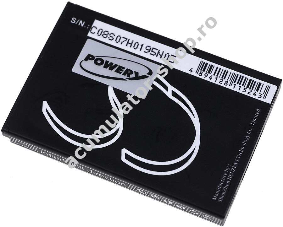 1500mAh/5,5Wh3,7VLi-IonNegruPowery58,7mm x 39,9mm x 7,2mm60g