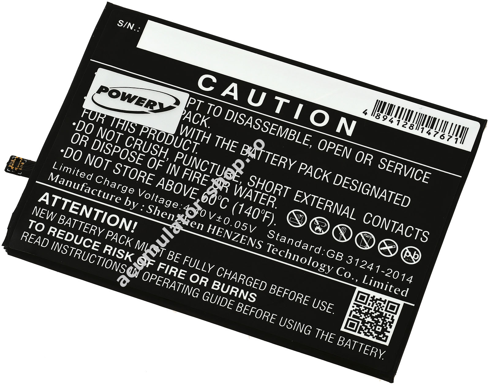 3300mAh/12,7Wh3,85VLi-PolymerNegruPowery83,4mm x 61,4mm x 3,7mm48g