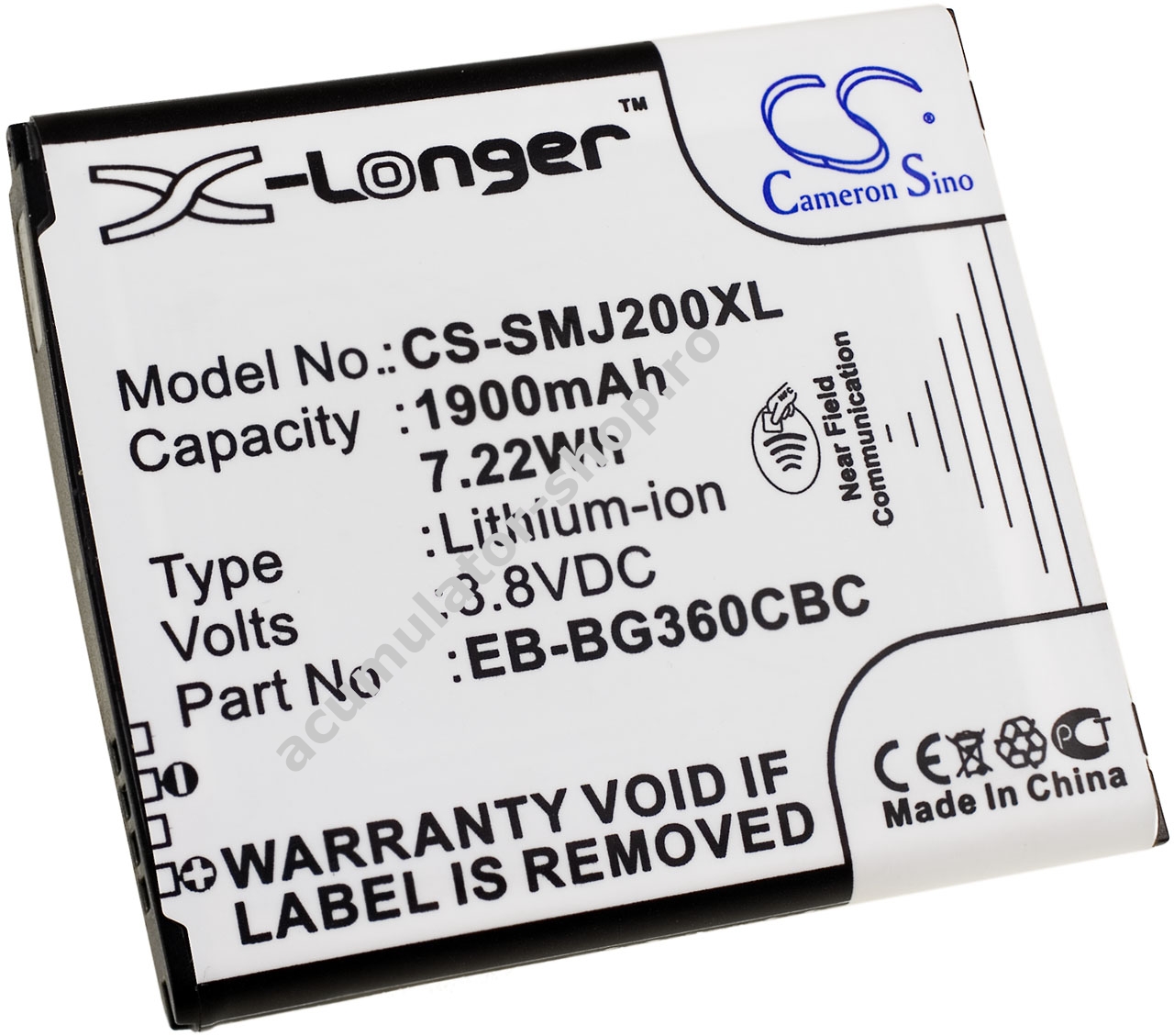1900mAh/7,2Wh3,8VLi-IonNegruPowery56,6mm x 50,9mm x 5,3mm40g