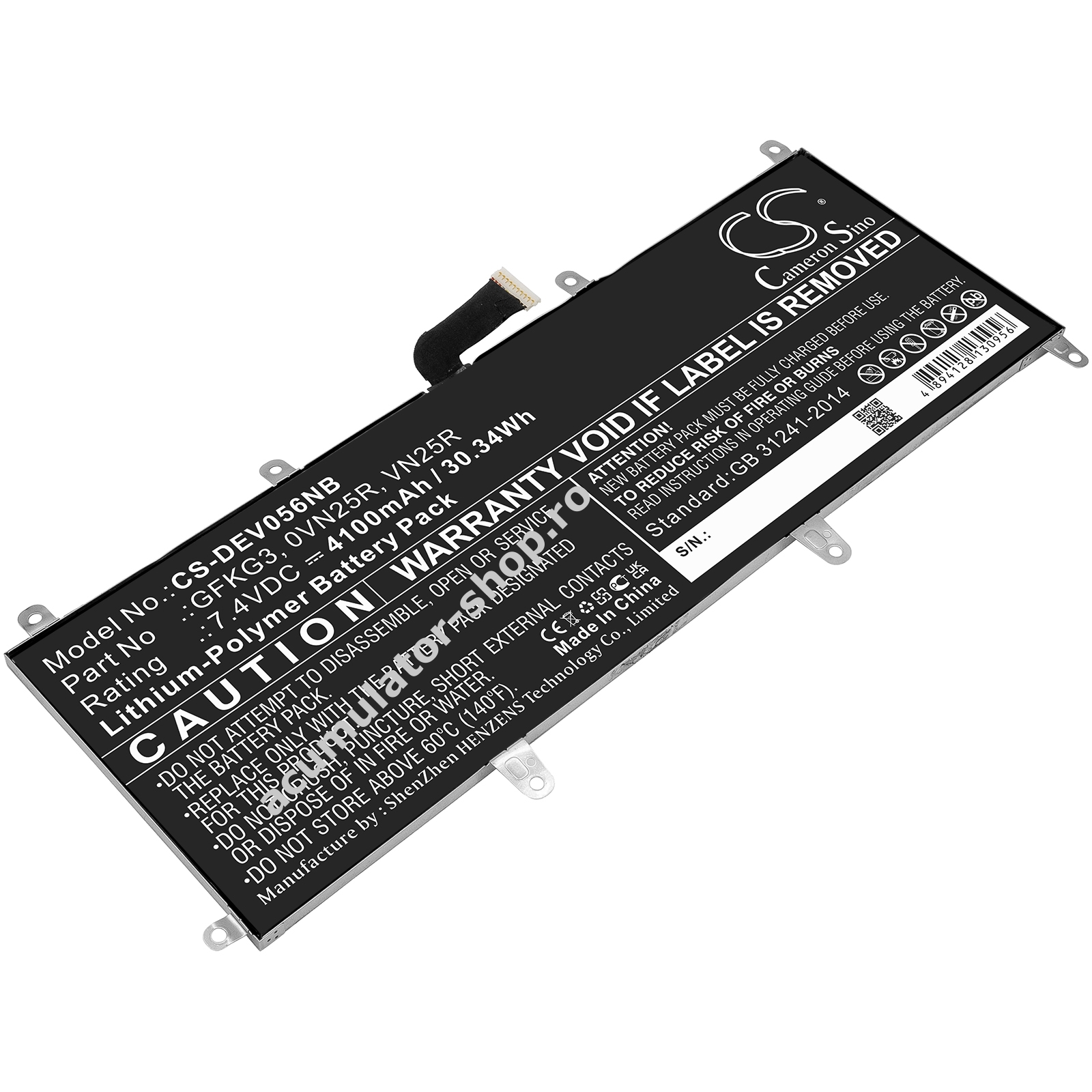 4100mAh/30,3Wh7,4VLi-PolymerNegruPowery230,1mm x 92,7mm x 4,0mm159g