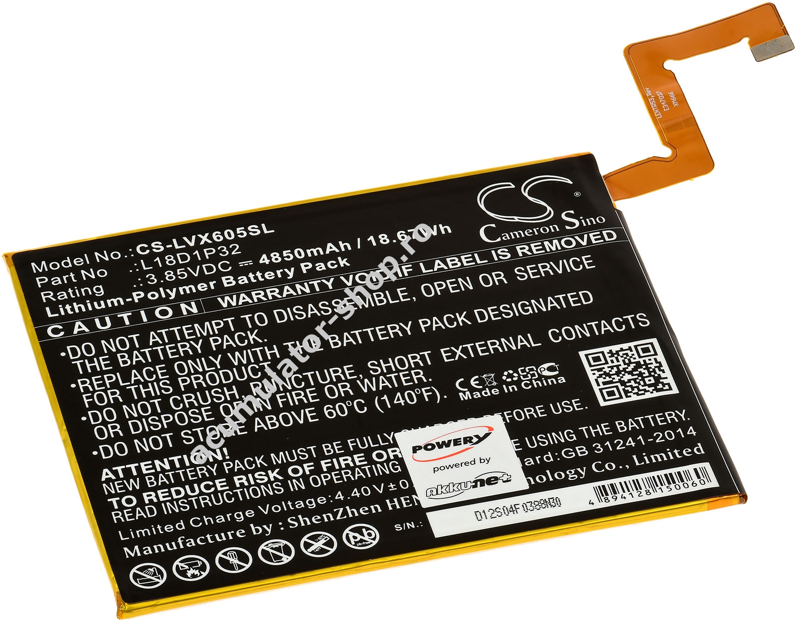 4850mAh/18,7Wh3,85VLi-PolymerNegruPowery116,4mm x 97,6mm x 2,5mm70g