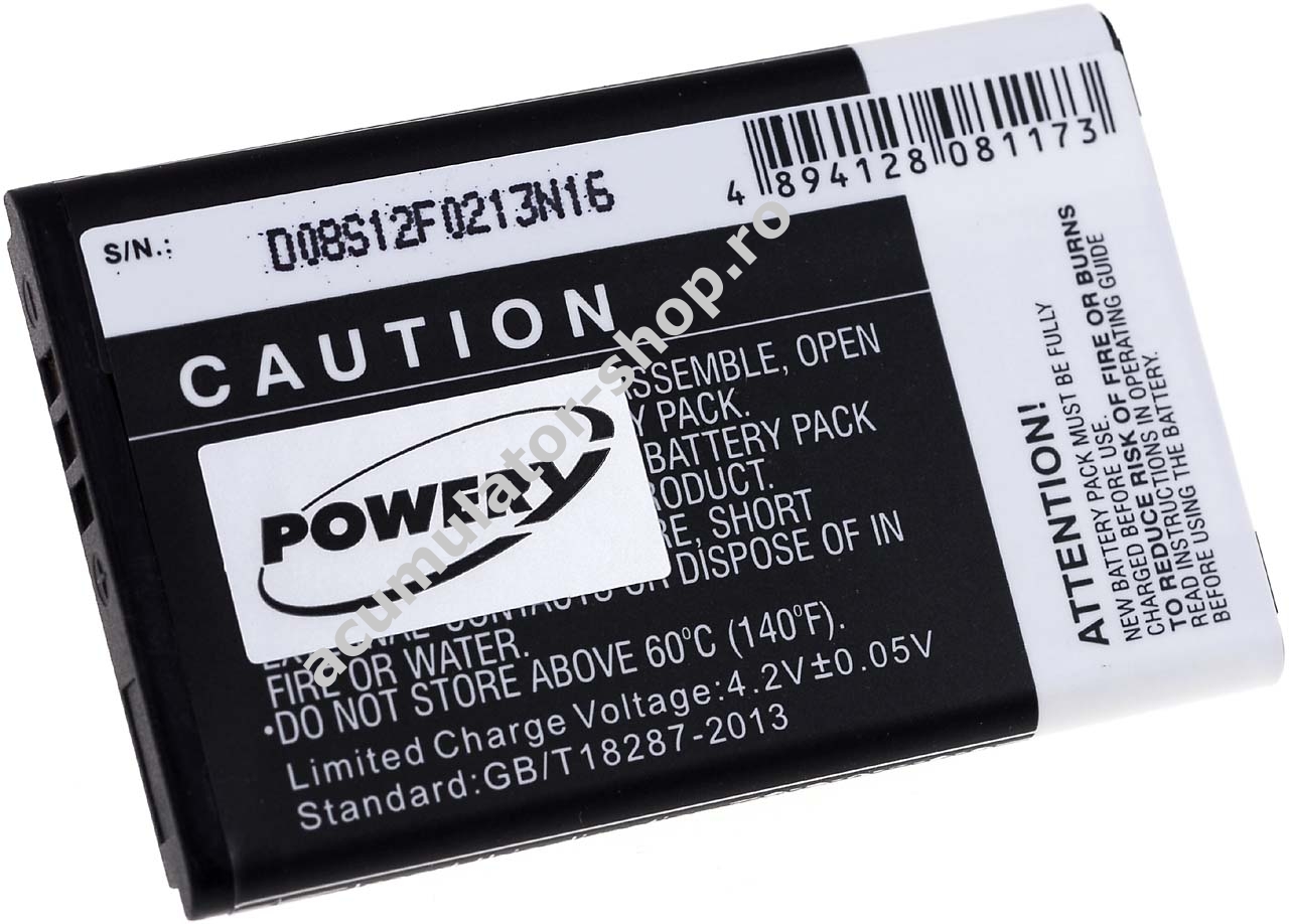 950mAh/3,5Wh3,7VLi-IonNegruPowery53,9mm x 33,9mm x 4,8mm60g
