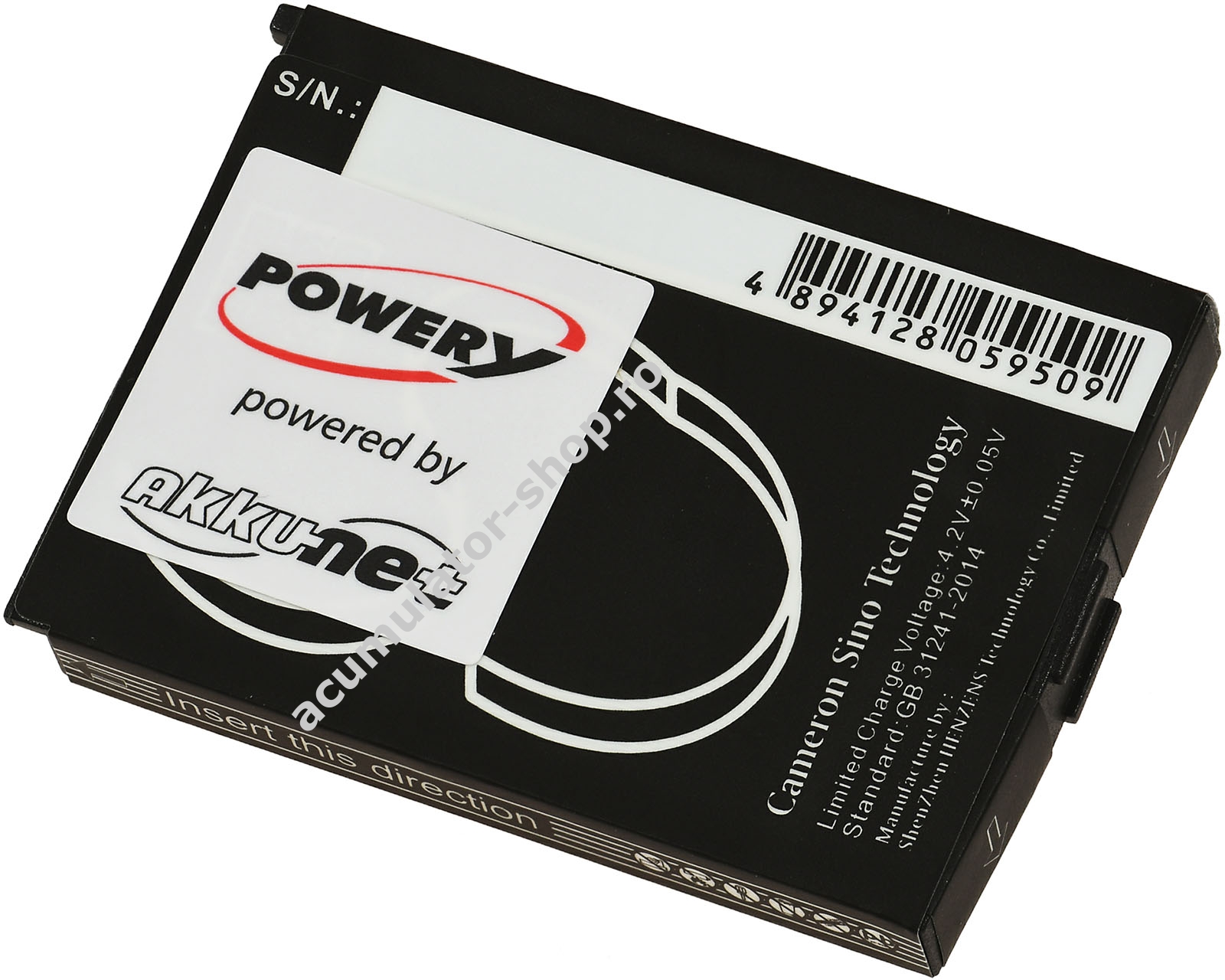 600mAh/2,2Wh3,7VLi-IonPowery45,7mm x 32,3mm x 5,2mm40g