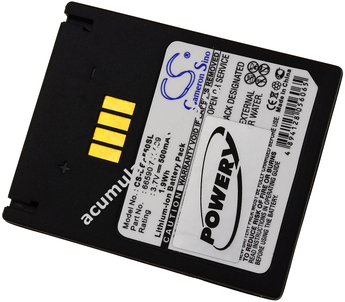 500mAh/1,85Wh3,7VLi-IonNegruPowery43,4mm x 35,5mm x 5,9mm30g