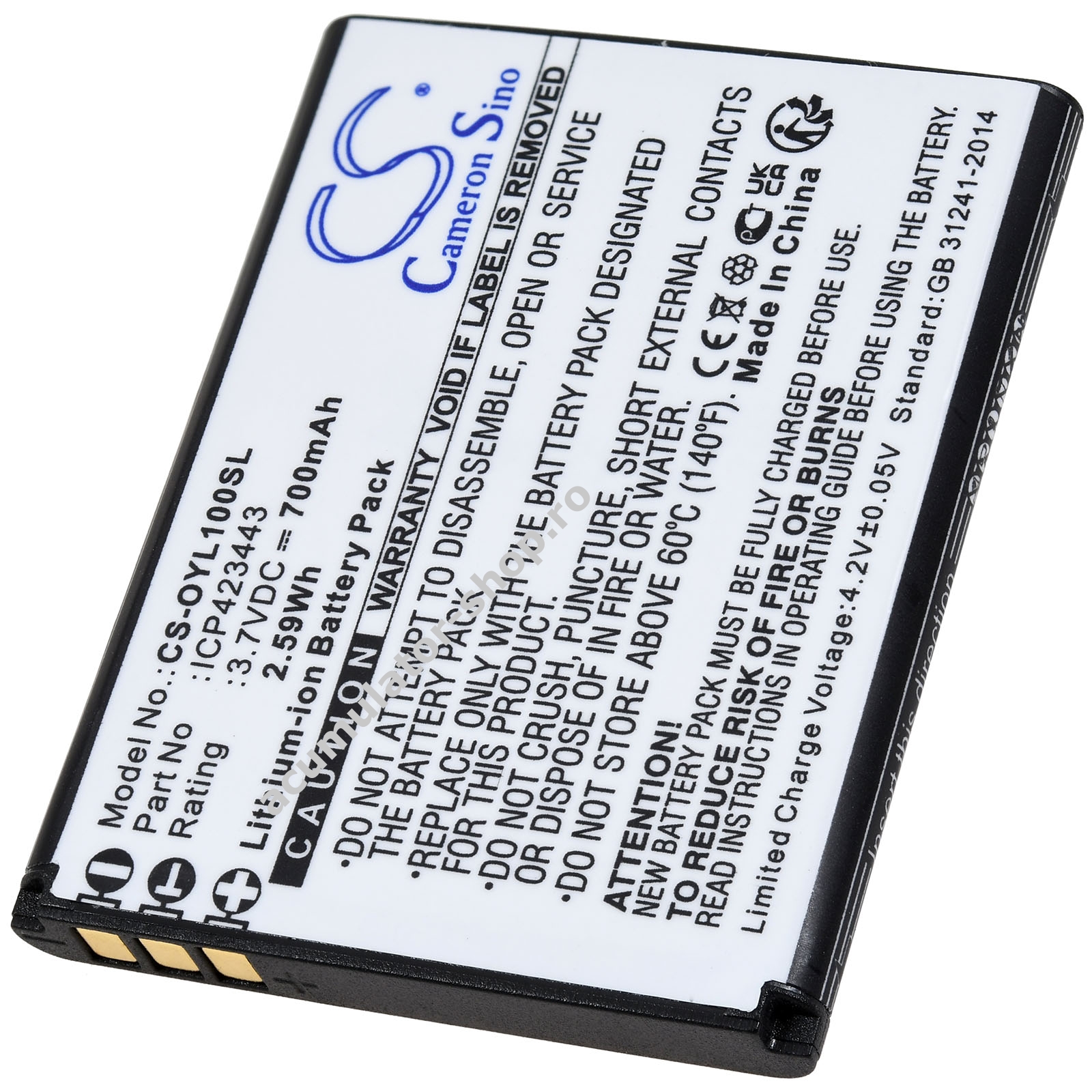 700mAh/2,6Wh3,7VLi-IonNegruPowery47mm x 37mm x 5mm16g