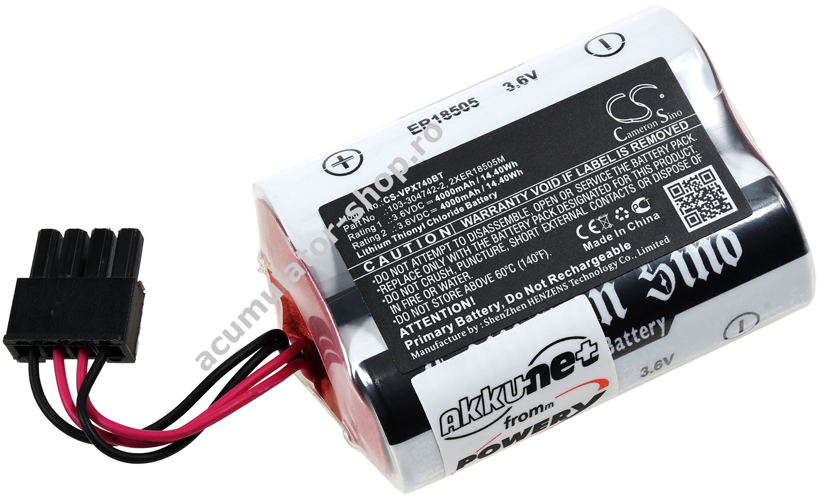2000mAh/7,2Wh3,6VLithium-ThionylchloridNegruPowery51mm x 37mm x 19mm59g -