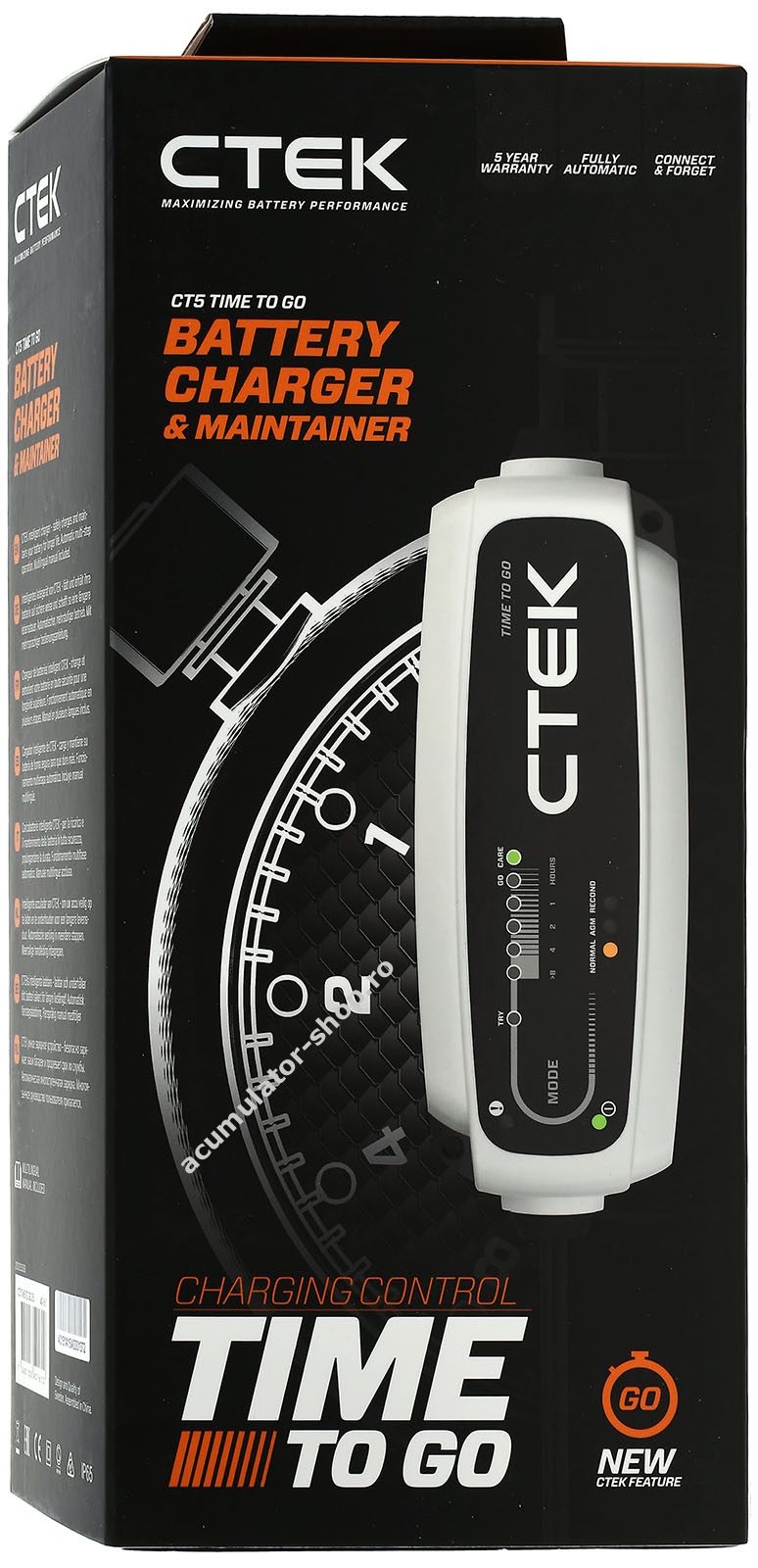 Incarcator automat baterie auto CTEK CT5 cu afisarea timpului ramas 12V 5A EU