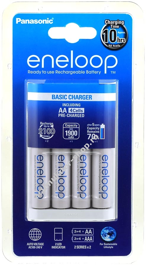 Incarcator acumulator pentru 4 buc. AA/AAA. Se livreaza cu 4 acumulatori 1900mAh Panasonic (Sanyo) eneloop