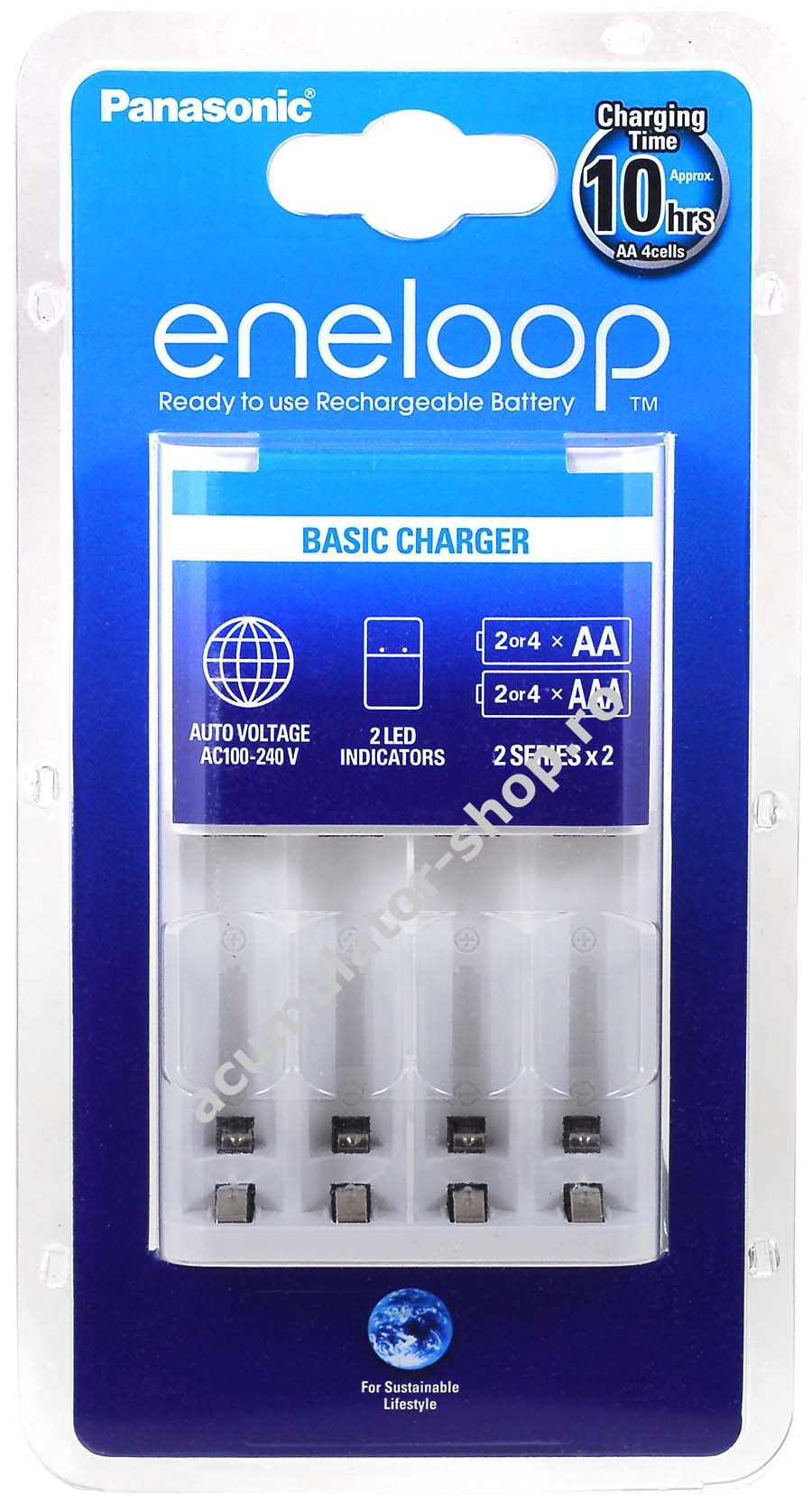 Incarcator pentru 4 baterii AA /AAA. Se livreaza fara baterii! Intrare: 230V AC, Iesire: 4x AA: 250mAh, 4x AAA : 120mAh, timp de încarcare aproximativ: 2 sau 4 buc AA 600min, 2 sau 4 buc AAA - 480min